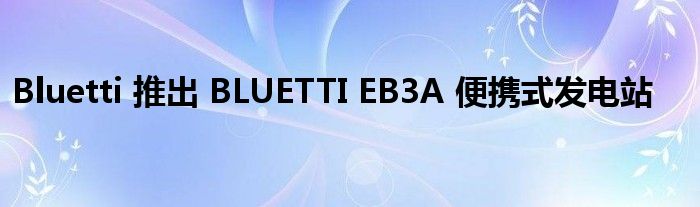 Bluetti 推出 BLUETTI EB3A 便携式发电站