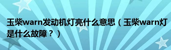 玉柴warn发动机灯亮什么意思(玉柴warn灯是什么故障?)