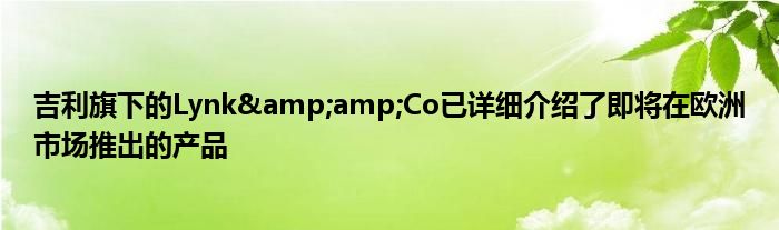 吉利旗下的Lynk&Co已详细介绍了即将在欧洲市场推出的产品