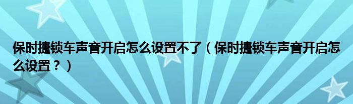 保时捷锁车声音开启怎么设置不了(保时捷锁车声音开启怎么设置?)