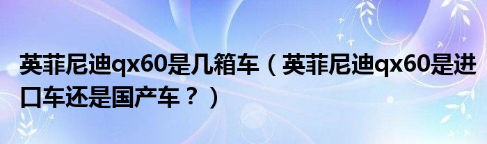 本文英菲尼迪qx60是几箱车,英菲尼迪qx60是进口车还是国产车?就分享到这里,希望能够帮助到大家。