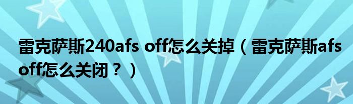 雷克萨斯240afs off怎么关掉(雷克萨斯afsoff怎么关闭?)