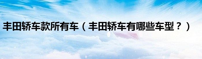 丰田轿车款所有车(丰田轿车有哪些车型?)