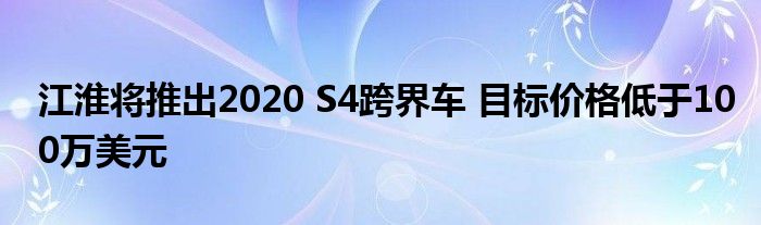 江淮将推出2020 S4跨界车 目标价格低于100万美元