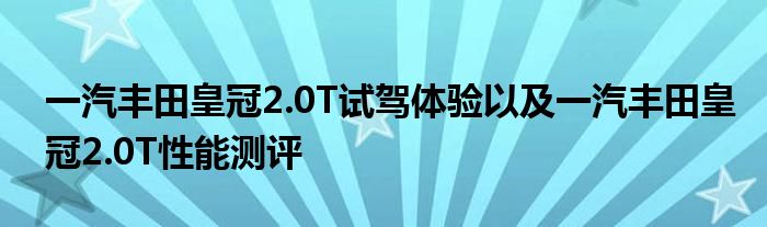 一汽丰田皇冠2.0T试驾体验以及一汽丰田皇冠2.0T性能测评