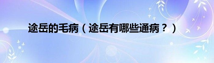 大家好,相信大家对途岳的毛病,途岳有哪些通病?的问题都很疑惑,这个问题很多人还不知道怎么解决,现在让我们一起来学习学习吧!