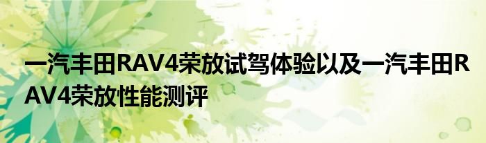 一汽丰田RAV4荣放试驾体验以及一汽丰田RAV4荣放性能测评