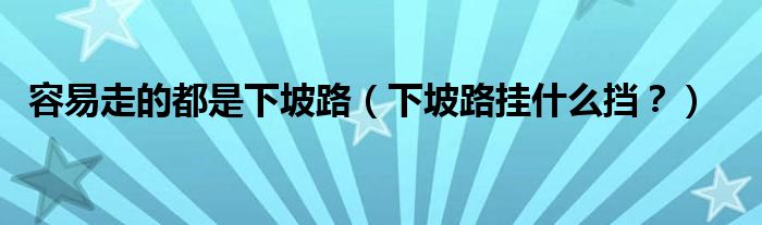 容易走的都是下坡路(下坡路挂什么挡?)