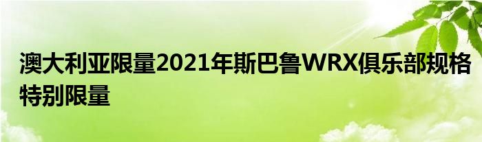澳大利亚限量2021年斯巴鲁WRX俱乐部规格特别限量
