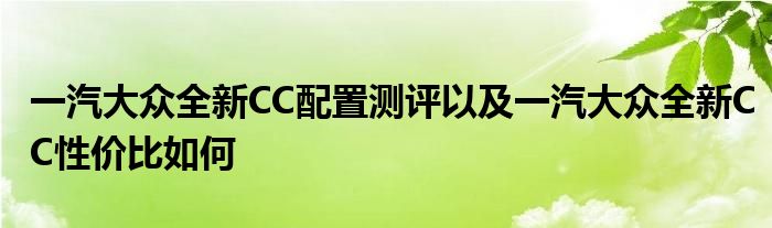 一汽大众全新CC配置测评以及一汽大众全新CC性价比如何
