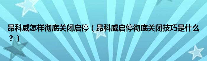 昂科威怎样彻底关闭启停(昂科威启停彻底关闭技巧是什么?)