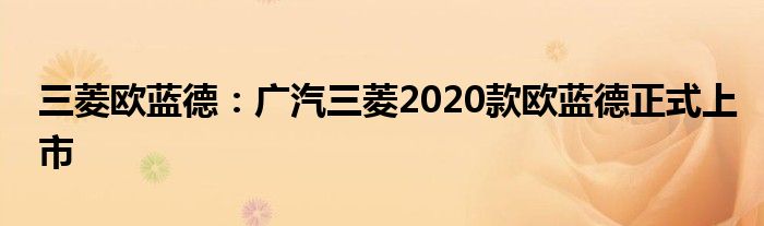 三菱欧蓝德:广汽三菱2020款欧蓝德正式上市