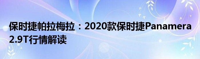 保时捷帕拉梅拉:2020款保时捷Panamera 2.9T行情解读