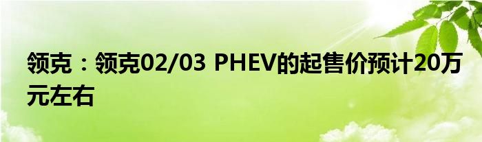 领克:领克02/03 PHEV的起售价预计20万元左右