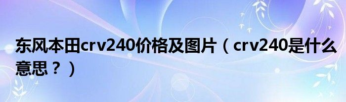 大家好,相信大家对东风本田crv240价格及图片,crv240是什么意思?的问题都很疑惑,这个问题很多人还不知道怎么解决,现在让我们一起来学习学习吧!
