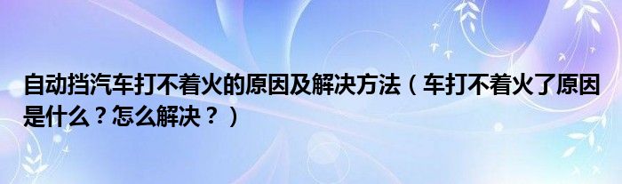 自动挡汽车打不着火的原因及解决方法(车打不着火了原因是什么?怎么解决?)