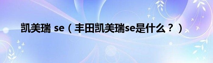 大家好,相信大家对凯美瑞 se,丰田凯美瑞se是什么?的问题都很疑惑,这个问题很多人还不知道怎么解决,现在让我们一起来学习学习吧!