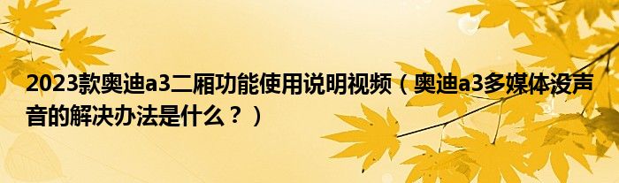 2023款奥迪a3二厢功能使用说明视频(奥迪a3多媒体没声音的解决办法是什么?)