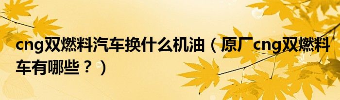 cng双燃料汽车换什么机油(原厂cng双燃料车有哪些?)