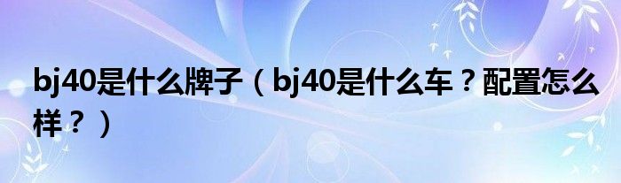 bj40是什么牌子(bj40是什么车?配置怎么样?)