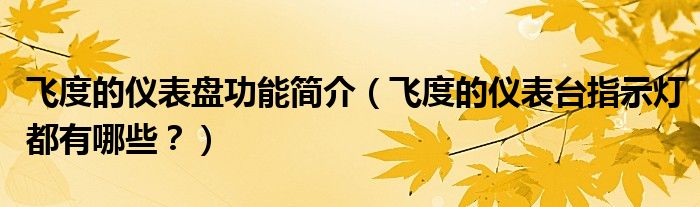 本文飞度的仪表盘功能简介,飞度的仪表台指示灯都有哪些?就分享到这里,希望能够帮助到大家。
