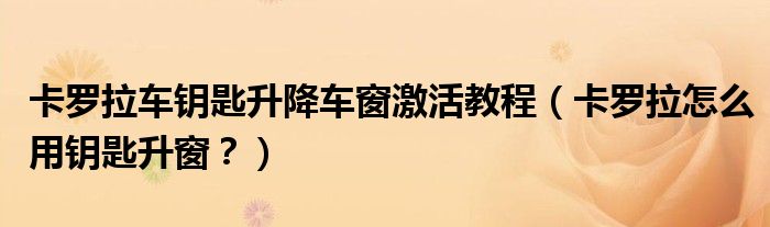 大家好,相信大家对卡罗拉车钥匙升降车窗激活教程,卡罗拉怎么用钥匙升窗?的问题都很疑惑,这个问题很多人还不知道怎么解决,现在让我们一起来学习学习吧!