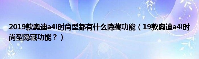 大家好,相信大家对2019款奥迪a4l时尚型都有什么隐藏功能,19款奥迪a4l时尚型隐藏功能?的问题都很疑惑,这个问题很多人还不知道怎么解决,现在让我们一起来学习学习吧!