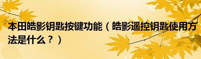 本田皓影钥匙按键功能(皓影遥控钥匙使用方法是什么?)