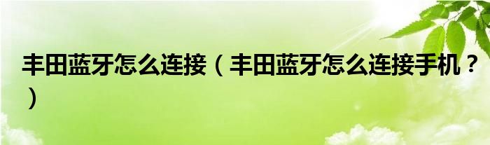 丰田蓝牙怎么连接(丰田蓝牙怎么连接手机?)