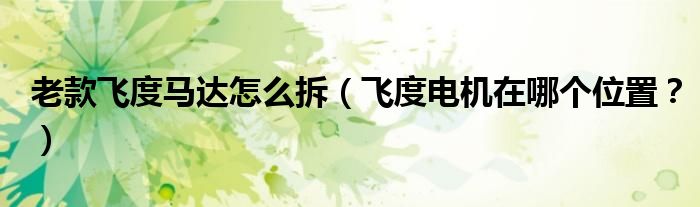 老款飞度马达怎么拆(飞度电机在哪个位置?)