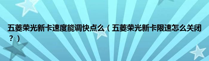 五菱荣光新卡速度能调快点么(五菱荣光新卡限速怎么关闭?)