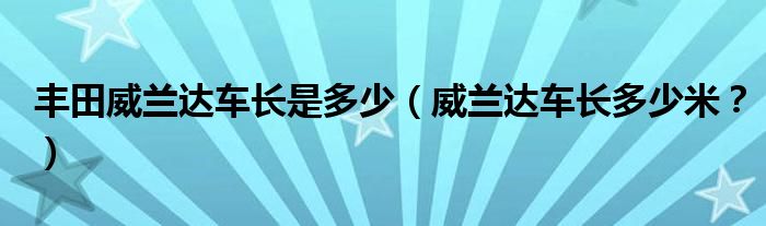 丰田威兰达车长是多少(威兰达车长多少米?)
