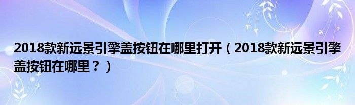 2018款新远景引擎盖按钮在哪里打开(2018款新远景引擎盖按钮在哪里?)