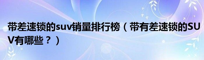 本文带差速锁的suv销量排行榜,带有差速锁的SUV有哪些?就分享到这里,希望能够帮助到大家。