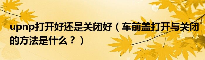 大家好,相信大家对upnp打开好还是关闭好,车前盖打开与关闭的方法是什么?的问题都很疑惑,这个问题很多人还不知道怎么解决,现在让我们一起来学习学习吧!